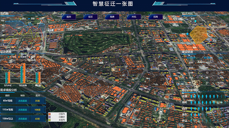 GIS技术赋能征迁行业:征迁工作与地理空间相关性极强,三维GIS的空间可视化表达与分析能力,成为实现征迁行业信息化发展的先进手段。